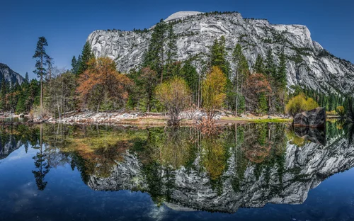 This is a 6 shot panorama at Mirror Lake in Yosemite National Park. The reflection of half dome was mesmerizing and the water was perfectly still. I was lucky enough to get there before the crowds rolled in and disturbed the waters.