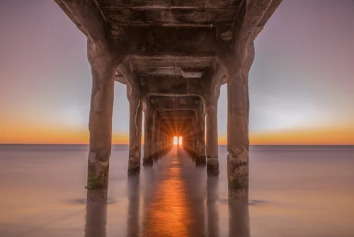This is my first atempt shooting under the Manhattan beach pier. It is on my list for my California Dreams project so I figured I would go check it out. A friend of mine and former workshop attendee headed down after seeing that the weather was perfect and the low tide was coming in right at sunset. Unfortunately the sun dipped behind a layer of low stratus right at sunset and stopped the clouds from exploding. But I was able to capture this image just as the sun disappeared behind its blanket of clouds.